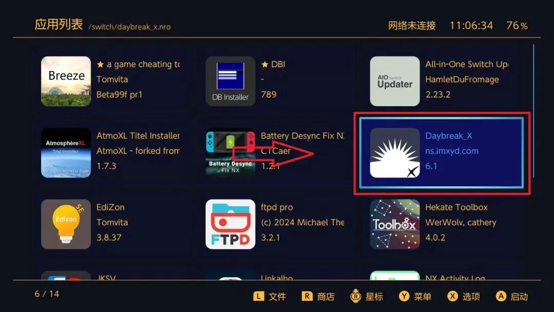 四、升级系统固件 系统文件复制好后将SD卡插回switch,并引导开机。进入到hekate界面主程序
